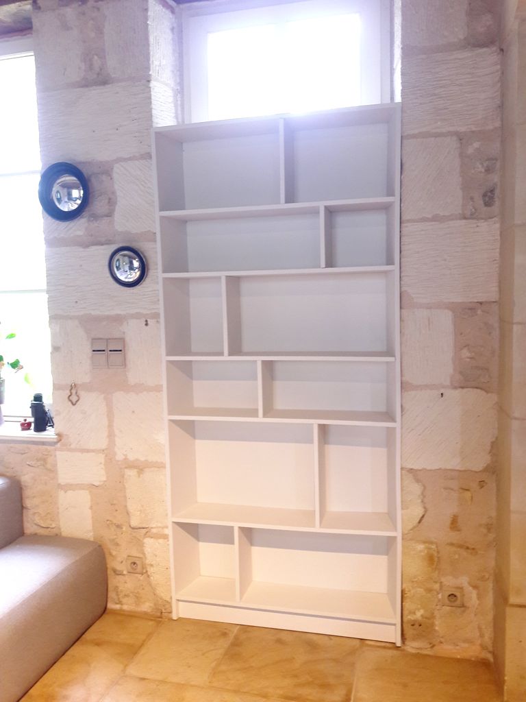 Création et réalisation de Tables, bibliothèques, lampes, appliques murales, planches de cuisine.